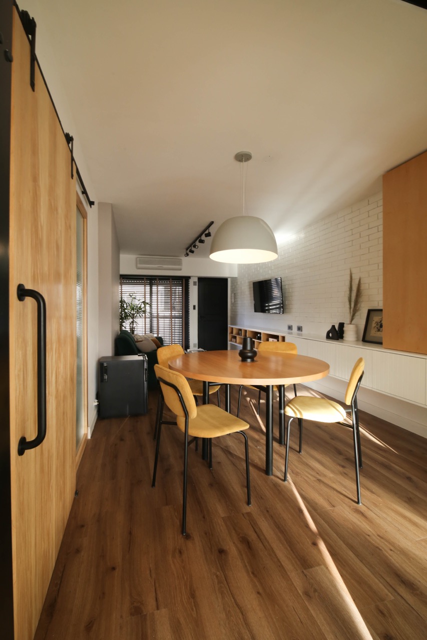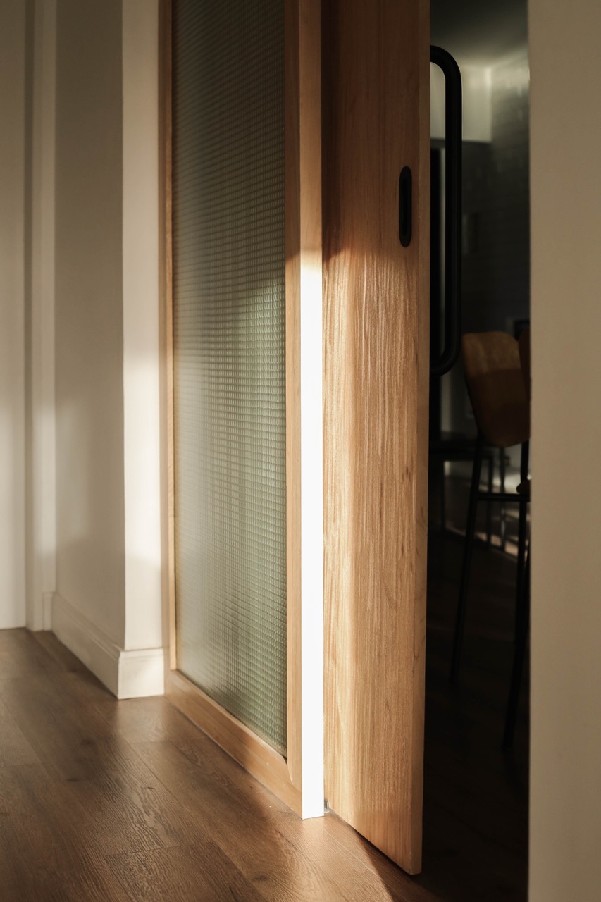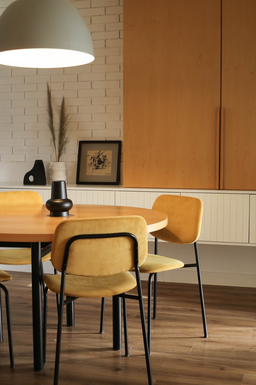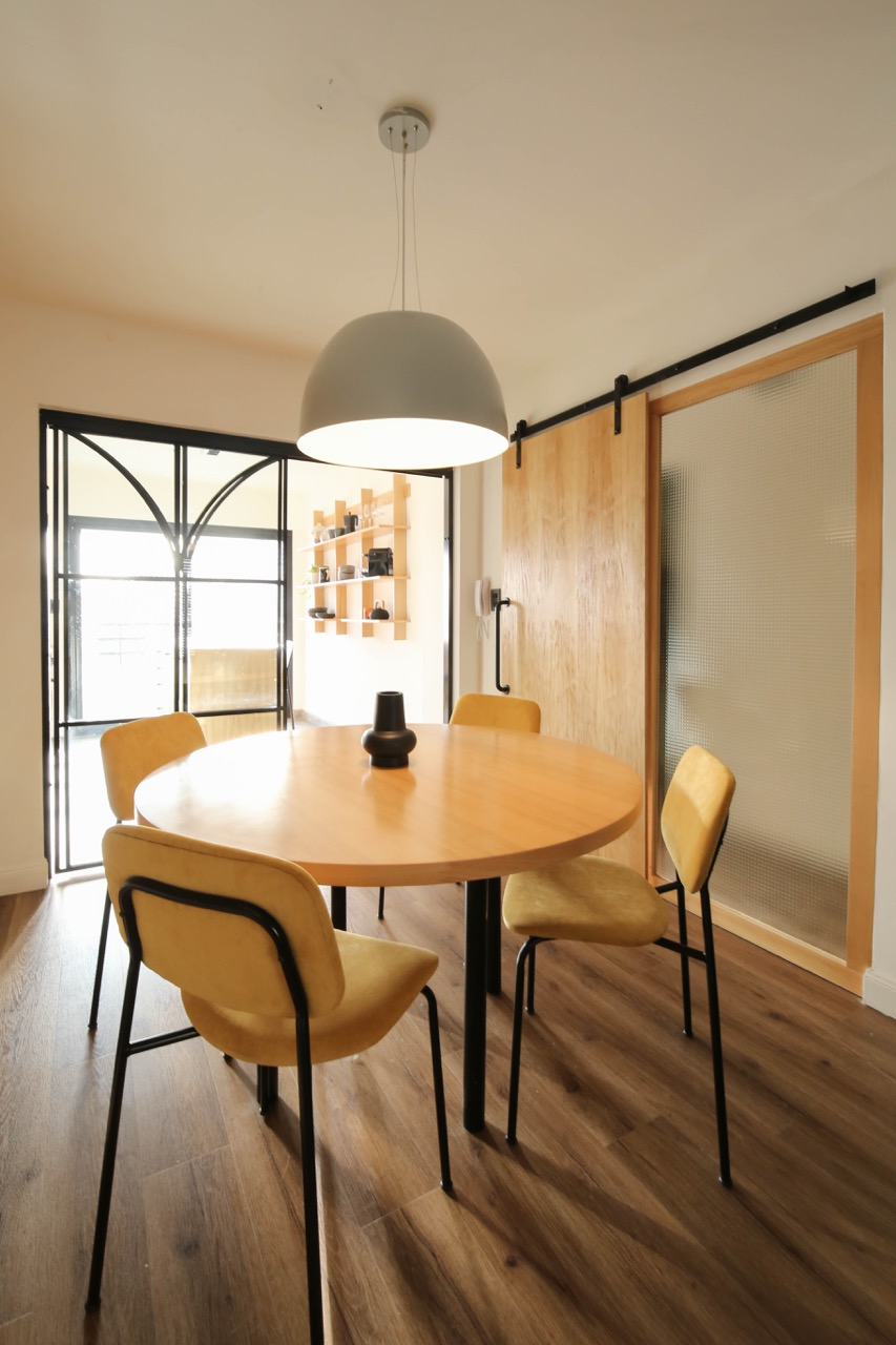 El proyecto enfrentó dos grandes desafíos: la baja entrada de luz natural y la falta de conexión entre los espacios. La solución consistió en abrir y ampliar vanos, incorporando aberturas según las necesidades de cada ambiente. La intervención principal fue la demolición del muro entre la cocina y el estar-comedor, reemplazado por una abertura de vidrio repartido que mejoró la fluidez sin perder funcionalidad. Como sello distintivo, se utilizó el color verde como protagonista en varios sectores.